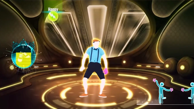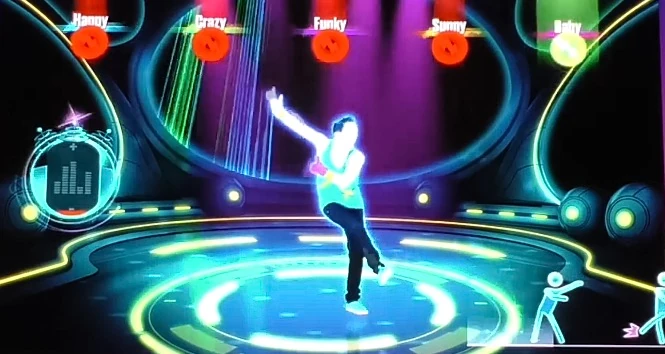 En la Maquina Just Dance, alienigenas necesitan tu ayuda para llenar la batería de su OVNI con tus movimientos de baile. Tu puedes elegir una variedad de rutinas, como Rock, Dubstep, Nadador, Hip Hop y Ballet.