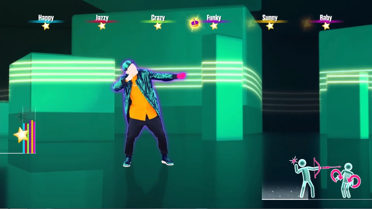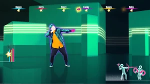 O dançarino está em uma sala verde com uma tela preta. Esta tela apresenta alguns cal quadrados verdes e algumas luzes brilhantes brilhantes. O pano de fundo a transição para um quarto azul escuro com vários blocos retangulares roxo, a maioria dos quais estão em pé, o que torna o fundo vermelho e se destacou linhas mais claras. As panelas cenário esquerda e direita. Pouco antes do movimento de ouro, os blocos de mudar completamente de vermelho e piscar amarelo, eo panning é mais rápido. Depois de alguns segundos, os blocos de recorrer a uma turquesa e cal flash de verde escuro.