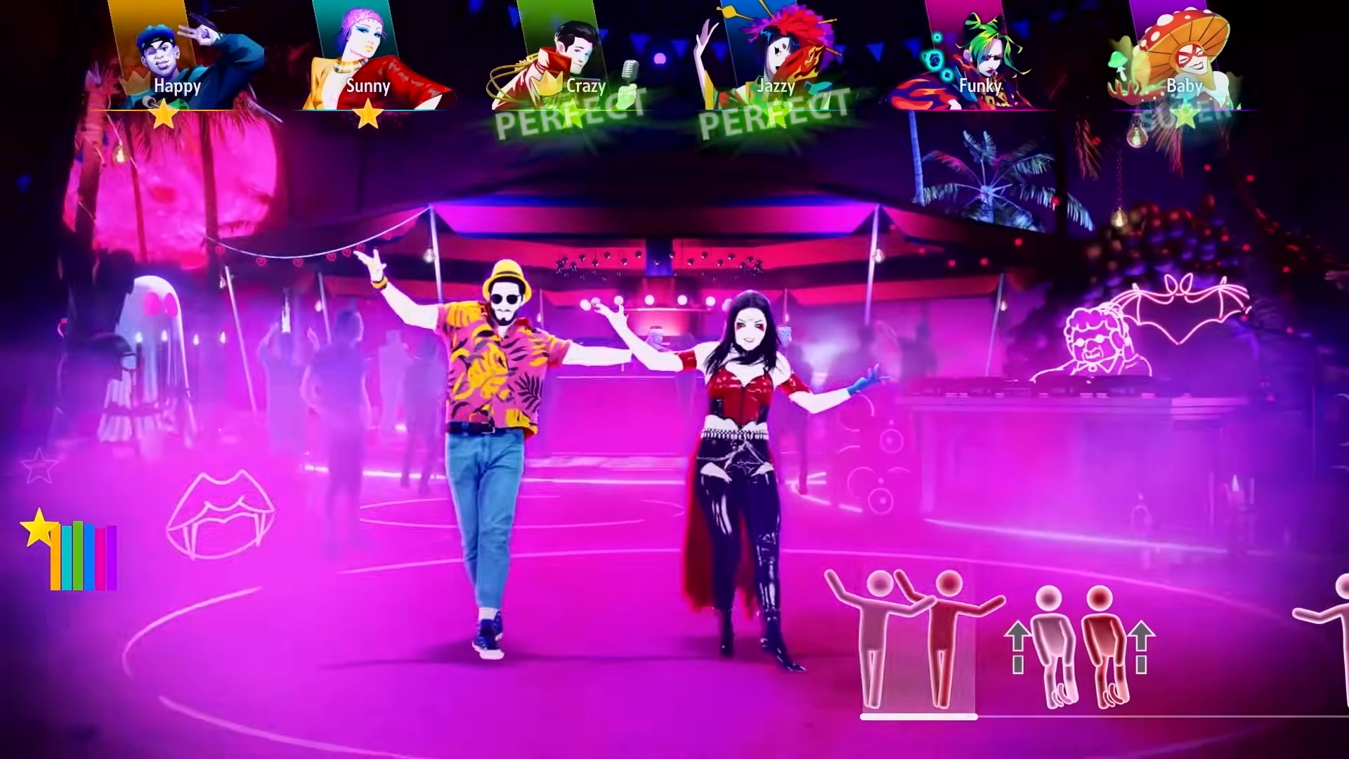 Nos refrões, as luzes neon retratam morcegos e presas de vampiros. Há um bar vazio sem pessoas ou bartender embaixo de uma cabana gigante, a avó fantasma de Rave In The Grave está trabalhando na cabine do DJ, e há pessoas ao fundo dançando, mas desta vez a área está iluminada em vermelho sob uma lua vermelha.