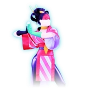 A dançarina é uma mulher baseada em uma gueixa com características japonesas. Ela tem o cabelo preto em muitas curvas conectadas por uma fivela de ouro , e veste um roupão rosa com listras brancas, leggings de patentes azul escuro , sapatos rosa e amarelo , uma máscara transparente rosa, um cinto rosa escuro com um diamante amarelo no meio, e uma gargantilha de ouro em seu pescoço.