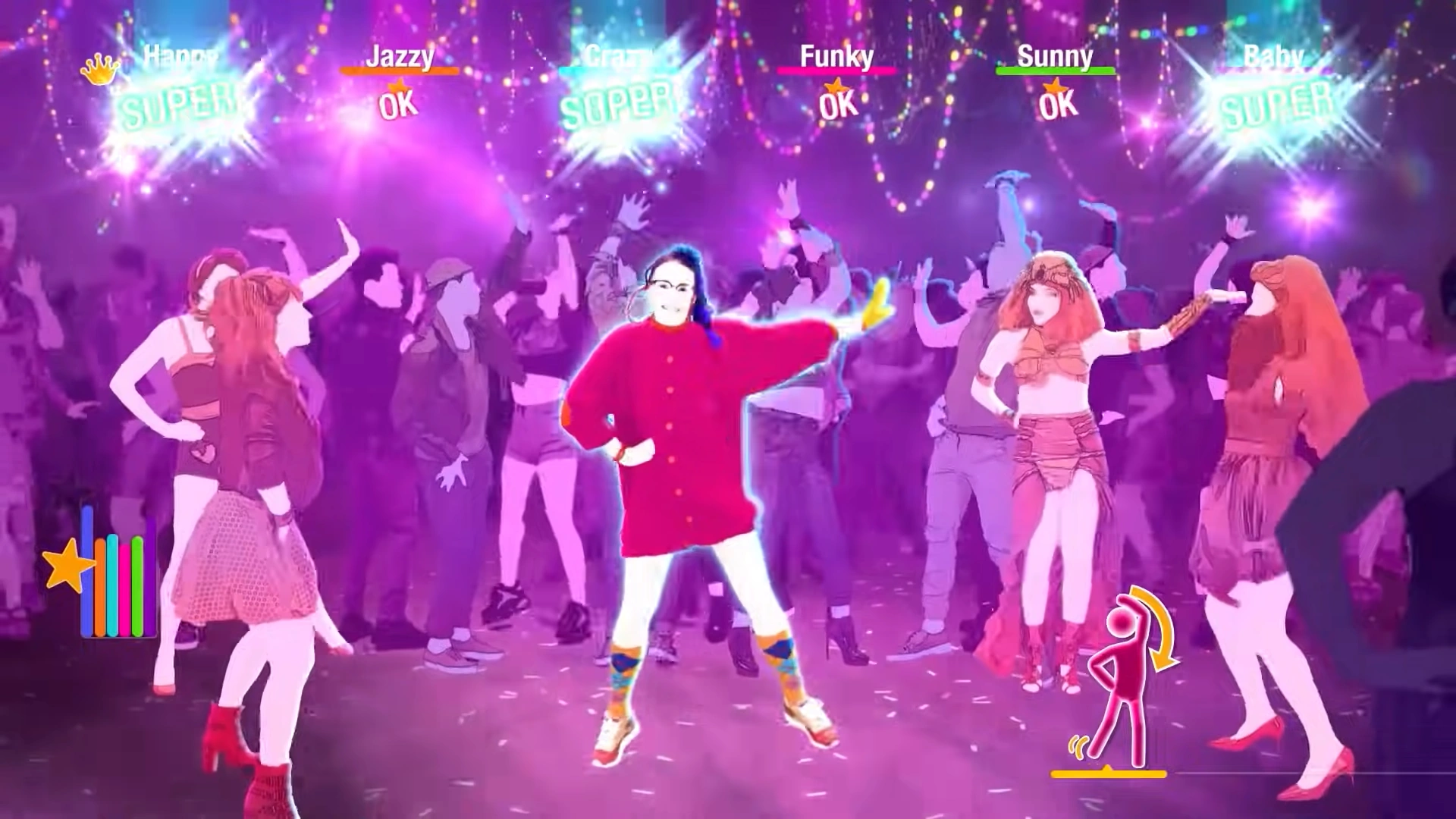 A rotina acontece em um ambiente escuro de boate, onde cordas de luzes coloridas pendem do teto e holofotes são vistos pulsando na parte de trás. Há alguns confetes espalhados no chão. Há uma grande multidão de pessoas dançando atrás da carruagem, algumas das quais aparecem em primeiro plano enquanto a câmera se move. Na maioria das vezes, eles estão em um esquema de cores roxo monocromático. Os treinadores anteriores de Just Dance que aparecem como parte da multidão estão em um esquema de cores laranja monocromático. Sempre que um dançarino de uma rotina anterior de Just Dance dança junto com o treinador, o treinador assume seu esquema de cores normal.