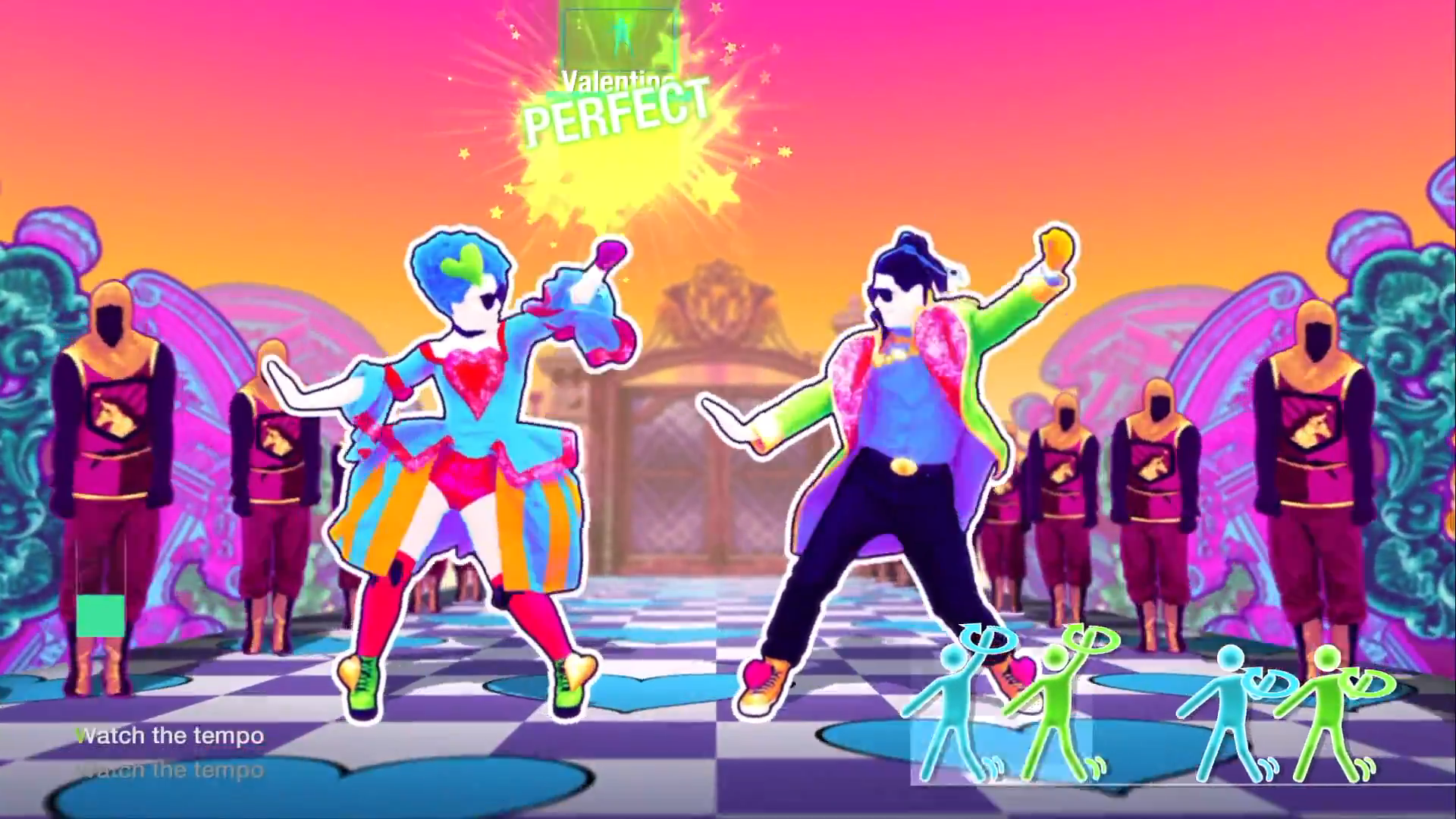 A rotina acontece em um piso quadriculado que se transforma em formas como diamantes, corações, trevos e estrelas. A rotina se move em direção a um castelo, progredindo de um jardim para um festival e para os portões do reino. O jardim tem arcos de plantas e folhas, várias plantas com um coração sobre eles em um pote de cerâmica azul, com cortinas de veludo que se erguem atrás deles. Durante o refrão, eles se movem no mesmo andar, exceto com o treinador da Narco barricando os lados e estátuas de concreto e abstratas girando atrás deles. Eles então vão para uma área com balões em forma de coração e trompetes expelindo mais balões. Três balões que crescem de um pote também podem ser vistos.
