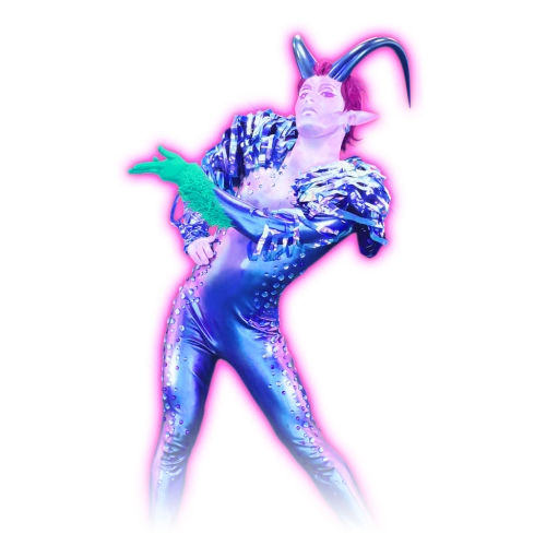 O treinador é um diabo chamado Amalthea. Ele tem pele rosa, cabelo magenta escuro penteado para trás, chifres azuis escuros e orelhas compridas. Ele está vestindo um macacão azul justo adornado com linhas verticais de strass do peito aos joelhos, e saltos altos combinando que emanam uma luz tênue. Ele também tem tiras de tecido azul ao redor de seus braços. A pele sai do peito e da manga direita, que é pintada de verde jade para criar uma ilusão de luva no último. Ele tem um contorno violeta escuro brilhante.