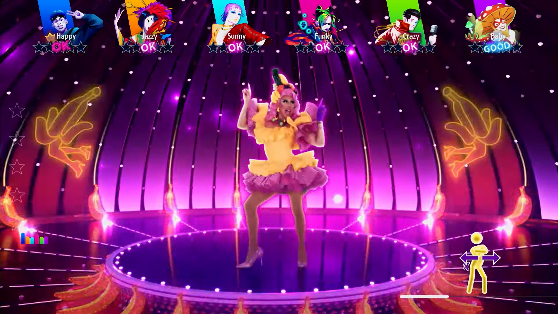 Durante os refrões, a plataforma e o piso começam a girar enquanto luzes douradas brilhantes iluminam o fundo. As luzes da plataforma piscam periodicamente em cores rosa enquanto as luzes da parede em forma de cúpula piscam para fora ou para longe do centro do teto.