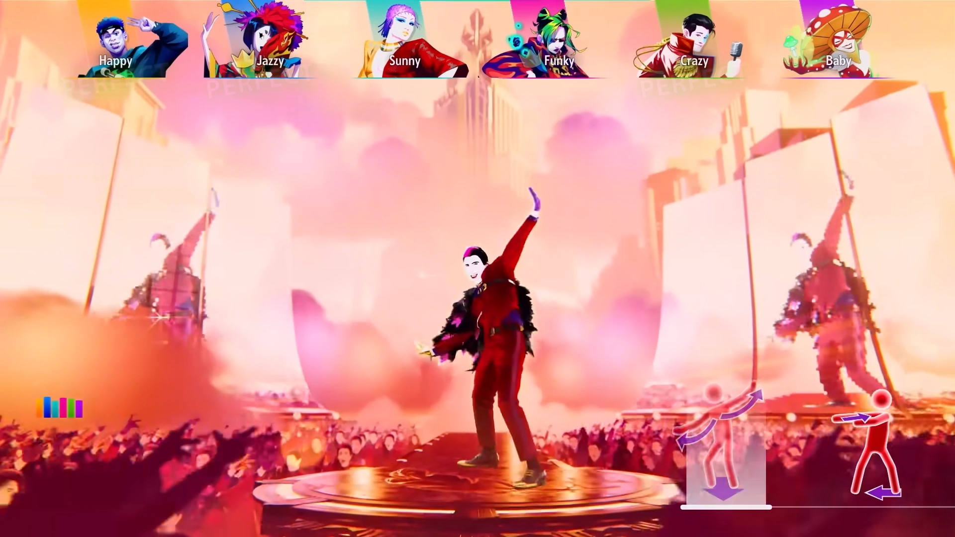 O dançarino é Jack Rose. Sua aparência é a mesma, tirando seu cabelo que é preto com uma mecha roxa e eu fru fru que agora é composto por penugens pretas e roxas.