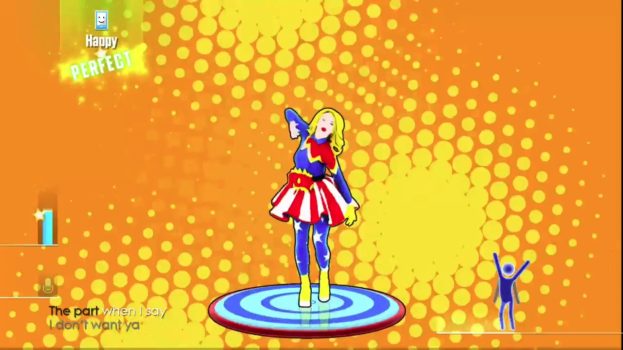 - On Just Dance Unlimited, when the internet connection is absent, a banner with many menu icons from the service appear. Among them, Break Free’s appears, but Stargirl has darker hair and a lighter suit.