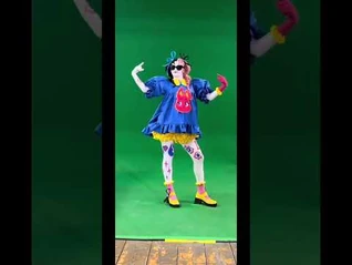 The routine takes place in a pink room full of large childhood objects. There is a rocking horse, a stuffed rabbit, a teddy bear, building blocks, a beaded maze, and a xylophone. Sometime after the beginning of the routine, the room darkens and the various objects flash and glow. Glow in the dark stickers of clouds can be seen on the wall. The background then goes completely dark and the floor lowers to transition into the next background. The new background shows wraparound shelving featuring more normal-sized objects such as clocks, an apple-shaped cabinet (resembling Julia’s apple purse from Apple), toy animals, flashing lanterns, and others. Large droplets then start falling behind the dancer. Once the floor finishes lowering, the shelves move out of the way, revealing a dark room with a large rabbit.