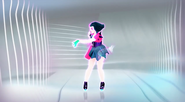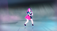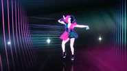 At the beginning of the routine, only her silhouette can be seen, which exudes blue and purple flames from her shoulders and left hand. As soon as the vocals start, she becomes fully visible and the flames fade away. Before the chorus, she exudes a bright, zoomed-out reflection. In the bridge, she creates hot pink and cyan electric trails while she moves her right hand. This also happens at the end with both hands, before she fades to black.