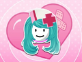 However, she has long fuchsia hair instead of hot pink and black bobbed hair, her triangle is replaced by a lightning bolt, her arm band has been moved to her right arm, her nails are painted dark fuchsia, and her dress is slightly less saturated.