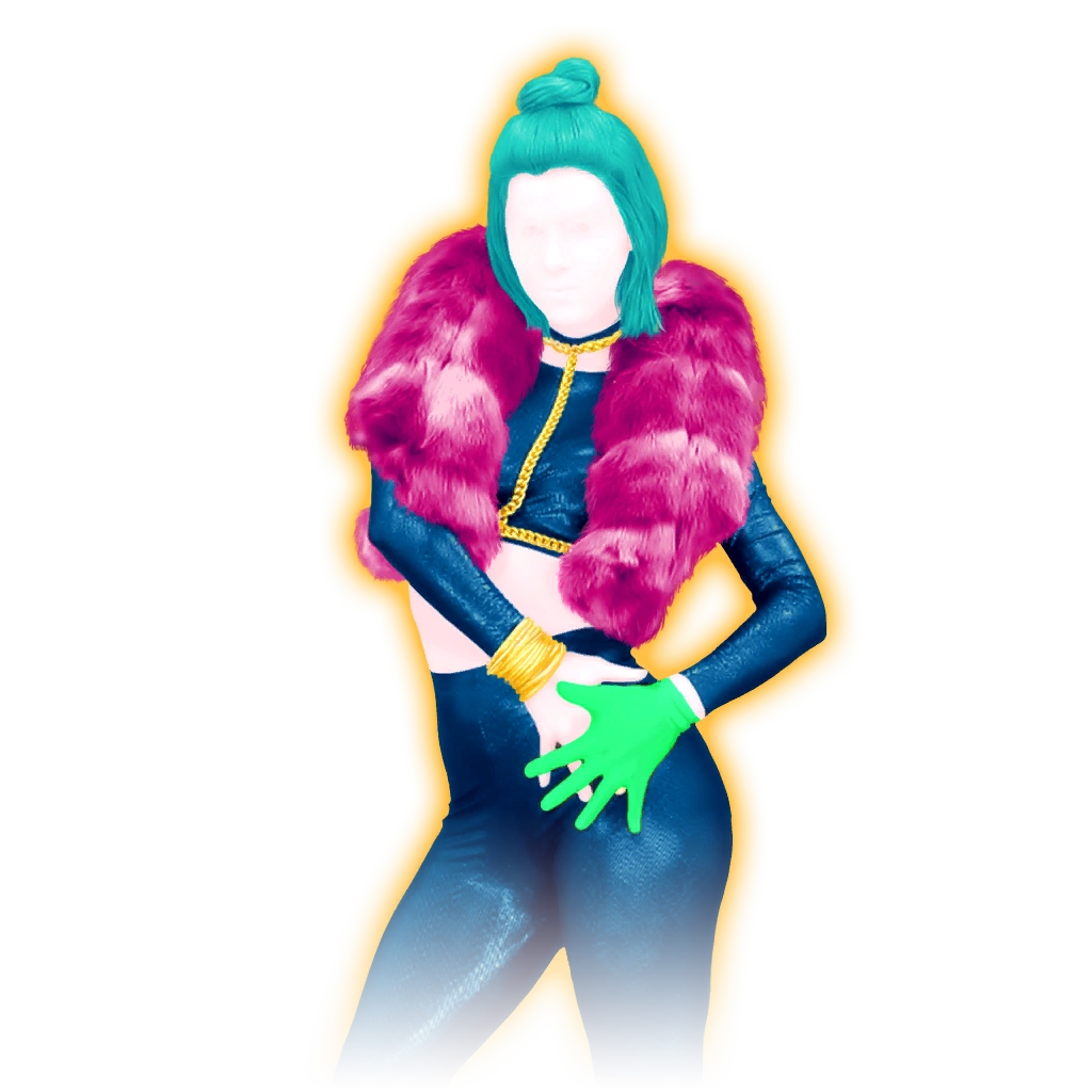 The coach is a woman named Zofia with teal bobbed hair and a messy bun on the top. She wears a golden necklace, a deep blue sleek crop top with long sleeves, golden highlights under a fuchsia fur jacket, a golden bracelet on her left wrist, deep blue sleek pants, a vivid lime green glove, and deep blue heels. Her outline is yellow in the verses and the second part of each chorus and blue in the first part of each chorus. In the bridge, she has a light blue fiery glow behind her yellow outline.