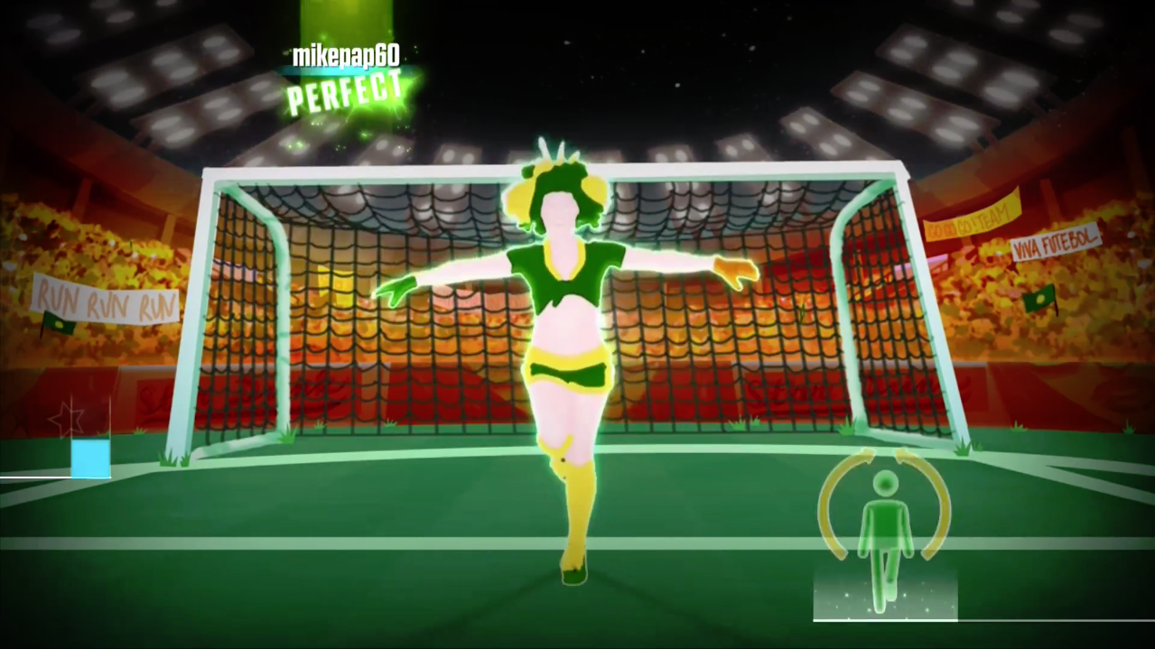 - In Tribal Dance’s Mashup, the soccer balls do not appear while she pretends to save the goals.