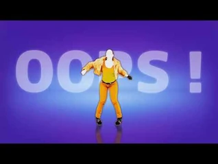 The background begins as a pink screen, and switches between pink, purple, gold, and green throughout the routine. Certain words from the song appear in bold behind the coach when they are sung. When "Oops!" is sung, the screen turns from purple to gold and the word flashes brightly. During the bridge, the screen is divided into three triangular sections, purple on the sides and pink the center. In the Wii version, two holograms of the coach appear behind her and remain until the bridge ends. On other consoles, the holograms flash on screen very briefly and disappear. From Just Dance Now and onward, the holograms do not appear at all.
