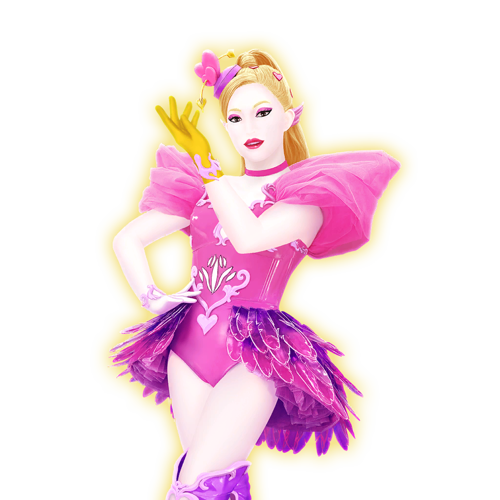 - Cupid's outfit becomes purple when she is crouching, likely indicating that her outfit is all one base color and the purple in her boots is caused by chroma key effects instead of them actually being a different color.