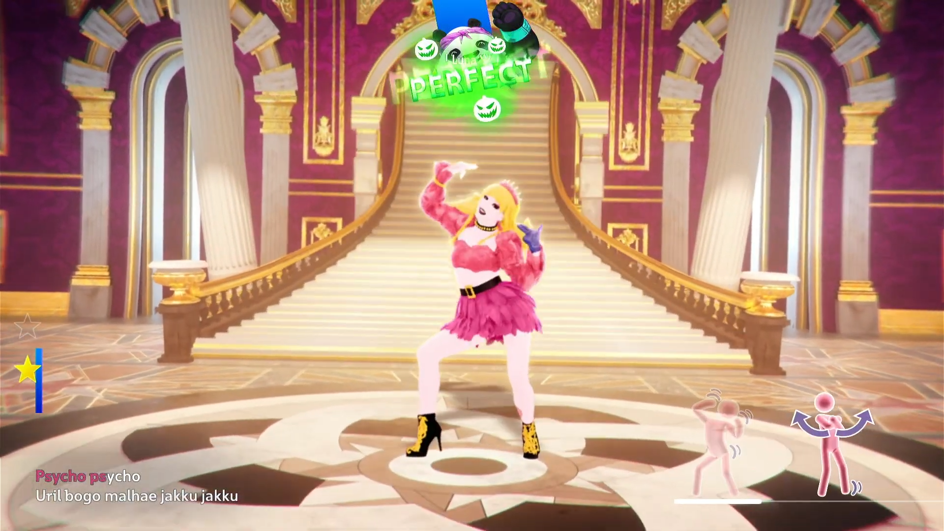 "Psycho" by Red Velvet is featured on Just Dance 2023 Edition. Although it is tagged as an alternate routine, it lacks a caption.