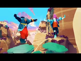 After the chorus, the background fades back into the cavern, without the crystals, and a panda wearing a teal robe and red pants materializes and dances with the coach. His name is Master Panda. The background then moves back to the canyon, showing both dancers higher in the air on their own platforms. Master Panda and Mihaly both jump from platform to platform and wind up at the top of the canyon. Colored stones arranged in a circular pattern can be seen on the ground and a temple and more waterfalls can be seen in the distance. The camera pans to the right and reveals the Temple of Master Panda, a temple with a large stone statue of Master Panda with water flowing from both of its hands. As the song ends, Master Panda places a pawprint on Mihaly’s shirt and then dissolves. As the routine comes to a close, a portal opens and Sara, Wanderlust, Discoball, and Brezziana step through. Mihaly greets them.