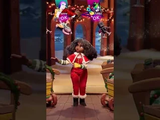 Whenever the background vocalists are singing "Ring-a-ling-a-ling-a ding-dong-ding", Mama is seen dancing on drums outside. The town from Think About Things can be seen in the distance. The two elves are also standing on drums with microphones singing the song and wearing black hair bobs that resemble a simplified form of the hairstyle that Ronettes lead singer Ronnie Spector sported. This backdrop occurs three times. The first instance this happens, Mama’s dance moves correspond with the toys from the previous scene combining themselves into new toys. The second instance this happens, the dance moves correspond with the toys being painted new colors. The third instance this happens, the dance moves correspond with wrapping paper getting cut and folded into cubes.