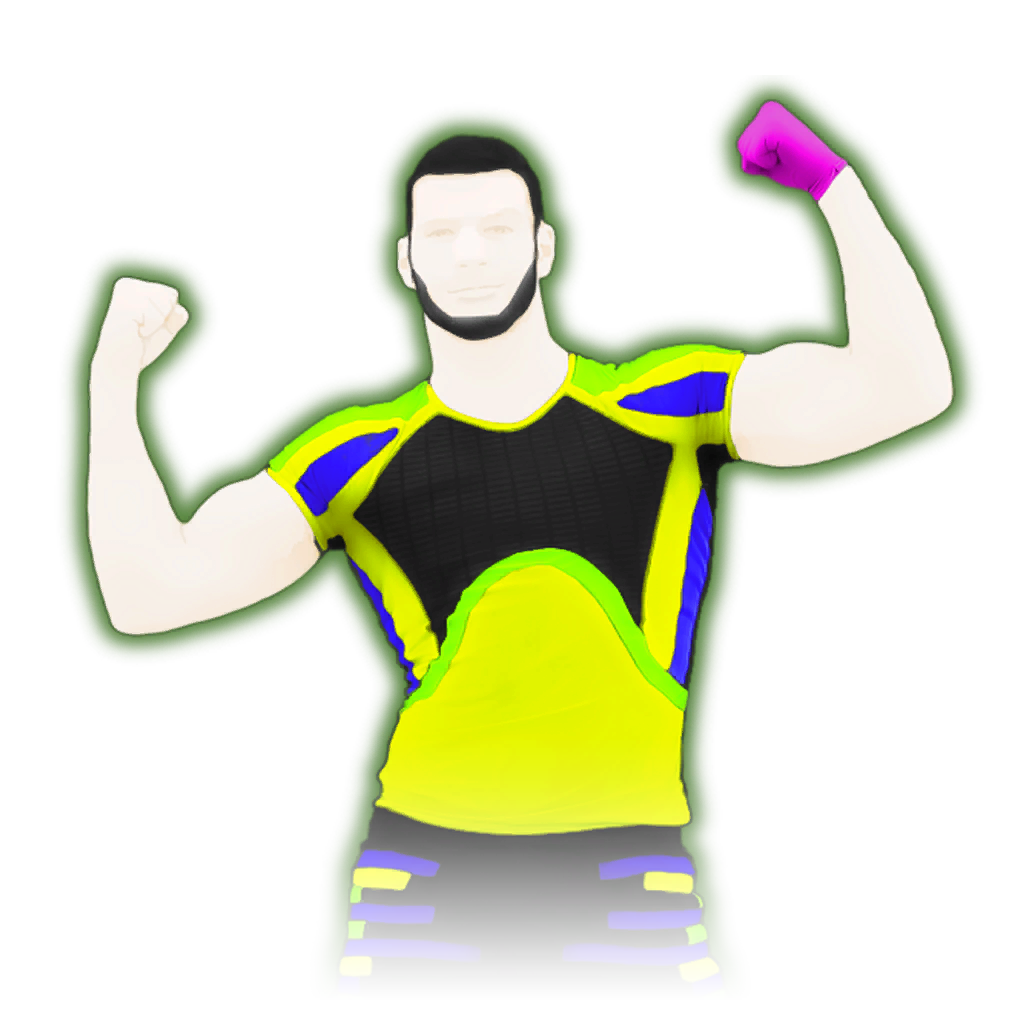 - In the game files of Just Dance 2015 and Just Dance 2016, there is an extraction of the coach with a blue glow instead of a lime green one. This extraction is only used in Party Masters or Mashups.