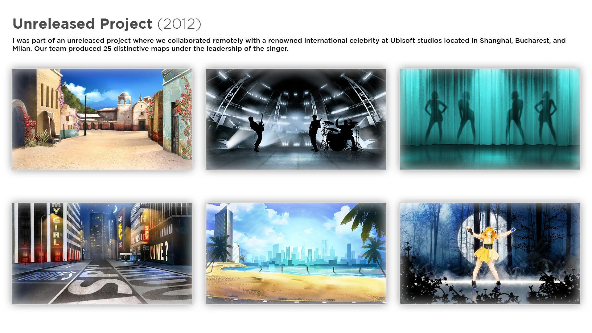Based on concept art, the game would have had a scoring interface that combined the styles of ABBA: You Can Dance and Just Dance 4. No other information has surfaced.