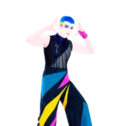 The routine takes place in a wide warehouse like area with a transparent ceiling. Various color-changing fluorescent lights can be seen hanging from the ceiling while many office desks with computers on them are scattered across the room. In the verses and final chorus, the room is dark with dimly-lit green accents, with a bright green spotlight in the center. In the first two choruses, the whole room lights up in pink and various objects start flashing to the beat. The desks rise up as the room briefly lights up in blue, moments before the refrain. Afterwards, the desks come crashing down, creating a small rectangular shockwave as the room turns bright yellow. In the final chorus, the room starts moving and zooming outwards, creating a looped illusion. Many background dancers dressed in a similar fashion to the coach are present, with longer sleeved shirts and gloves on each hand. They are dancing to a completely different, but extravagant choreography involving various contemporary dance moves. A colorful ghosting trail effect is applied onto all of them for the majority of the map. At the end of the routine, the entire room seemingly disappears with a more extreme ghosting effect as Eliott seems pleased with himself.