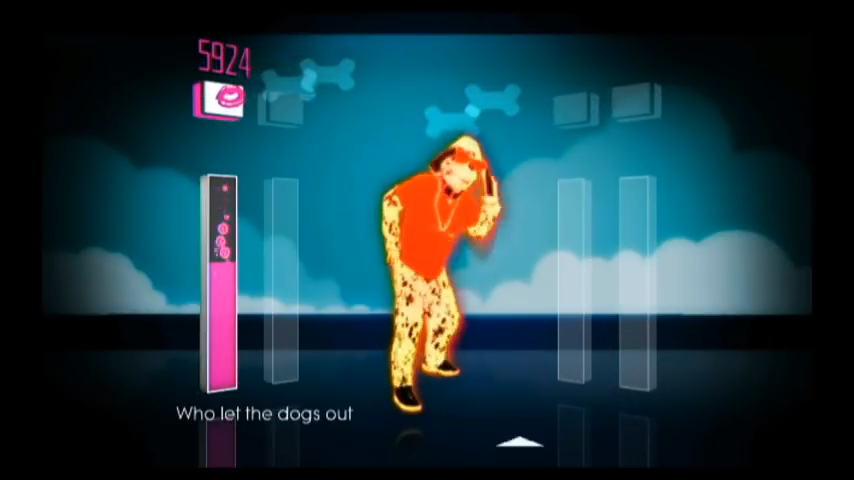 On the Wii version of Just Dance 3 and Just Dance: Greatest Hits, the room is much lighter. The clouds are more numerous and bounce up and down and the dog bones are now three-dimensional and fly in many directions. In the chorus, five teal blue dog paw prints appear one by one in a quick succession and flash to the beat whenever "Who, who, who, who, who" is sung and vanish during the verses. Whenever "Hah, ho, yippie-yi-yo" is sung, two other paw prints appear and flash to the beat on the sides of the screen. At the beginning and end of the routine, police sirens and dogs barking are heard.